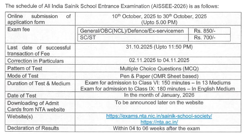 Sainik Schools are among the most prestigious educational institutions in India, designed to prepare students for careers in the defense services while providing a high standard of academic education. The All India Sainik Schools Entrance Examination (AISSEE) 2026 is a key stepping stone for students aspiring to join Class 6 and Class 9 in these schools. Understanding the exam dates, admit card process, and result declaration is crucial for aspirants to plan their preparation effectively.